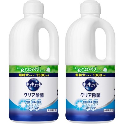 キュキュット クリア除菌 食器用洗剤 長もち泡がパッ! キュッと実感! グレープフルーツの香り 詰替え用 1380ml×2個 大容量