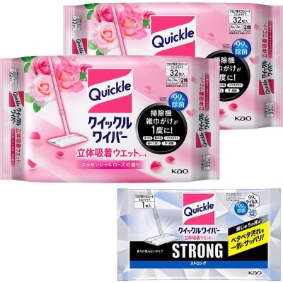 クイックル 【まとめ買い】ワイパー立体吸着ウエットシート ローズの香り 32枚×2個+ストロング1枚シート付
